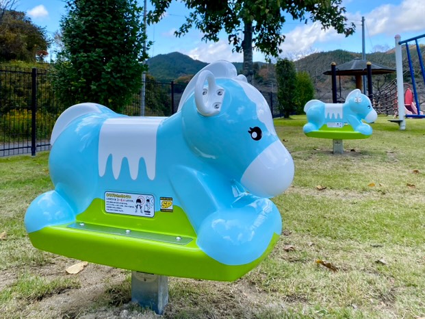 芝生が敷かれた広場には、東屋や水飲み場の他に、遊具も備え付けられています。トイレも完備していますので、ピクニックや軽い運動などにも最適です。グラウンドゴルフを楽しむ方々やお散歩、幼稚園の遠足など年間を通して利用され、まさに町民の憩いの場となっています。