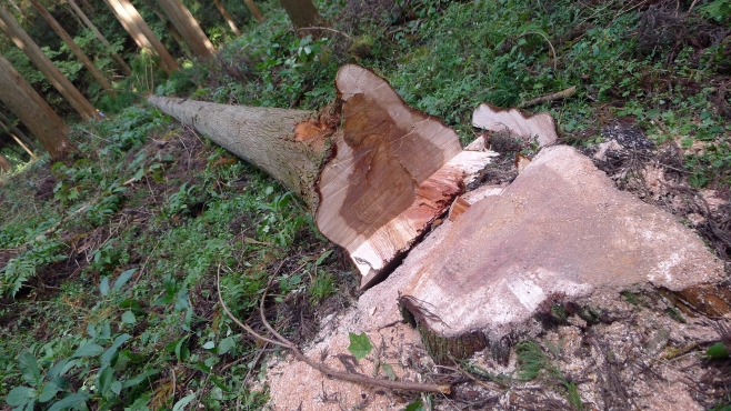 今回使用する木は古殿町大久田地区で伐採、胸の高さでの直径が7~80センチ、胴回りが2メートルを優に超える立派なスギです。