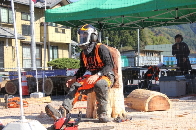 4日(日)は昨日に引き続き世界大会4連覇された城所ケイジ氏によるクイックカービングが行われ、迫力のあるチェンソーアートショーに多くの来場者が見入っていました。