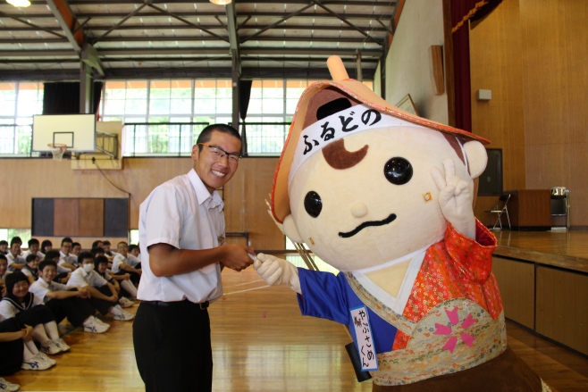 【2016.7.20】ふるどのこども園、古殿小学校、古殿中学校にやぶさめくんグッズをお届けしました!