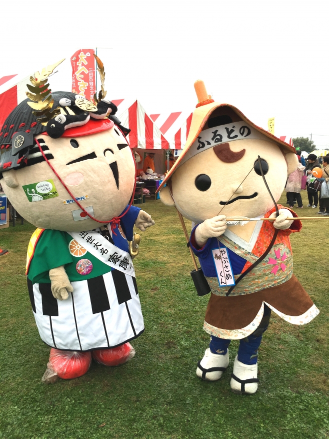 最後は2日間に渡って、隣のブースでお世話になった須賀川市の「ゆーりん」と「ボータン」との3ショットです。