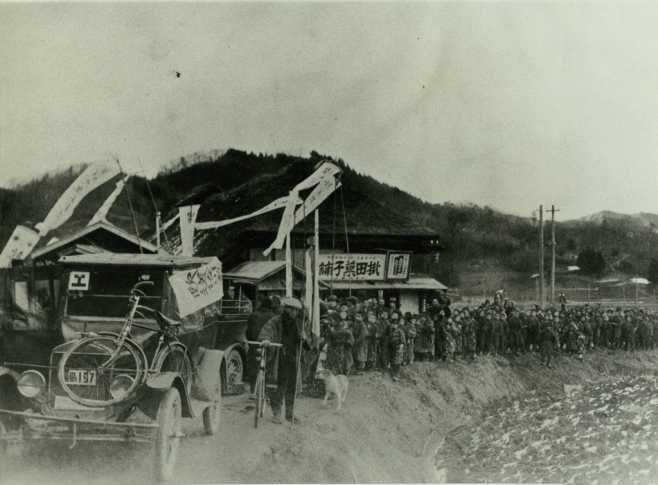 竹貫水電小松川発電所落成記念祝賀電飾アーチ