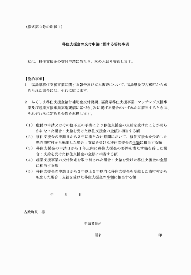 ③ 古殿町に,移住支援金の申請日から5年以上,継続して居住する意思を有していること。