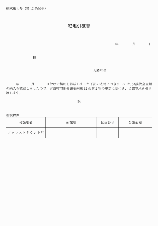 第12条 宅地の引渡しは,前条に規定する分譲代金の納入された日をもって行うものとする。