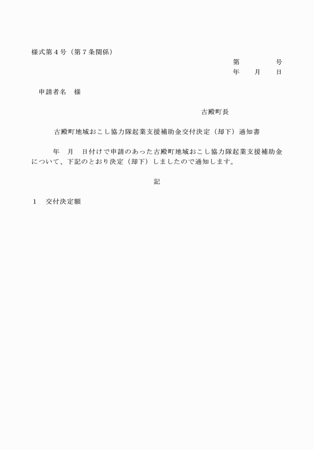 ○古殿町地域おこし協力隊起業支援補助金交付要綱